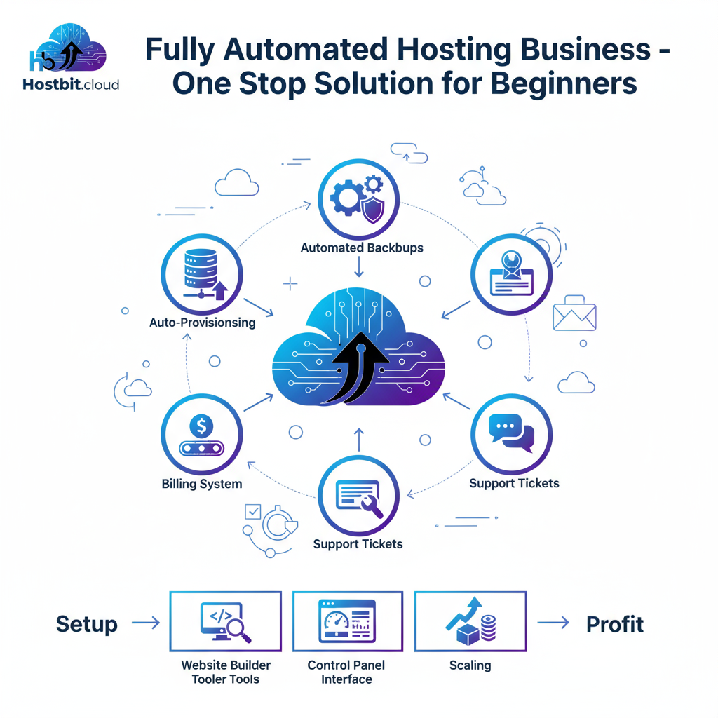 "Start your hosting business with ease using our fully automated solution for beginners. Build your online presence in one convenient package."
